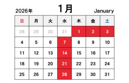 12月の定休日のご案内です