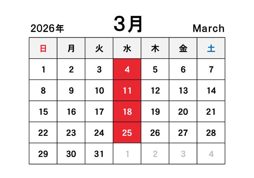 休業日 3/4、3/11、3/18、3/25