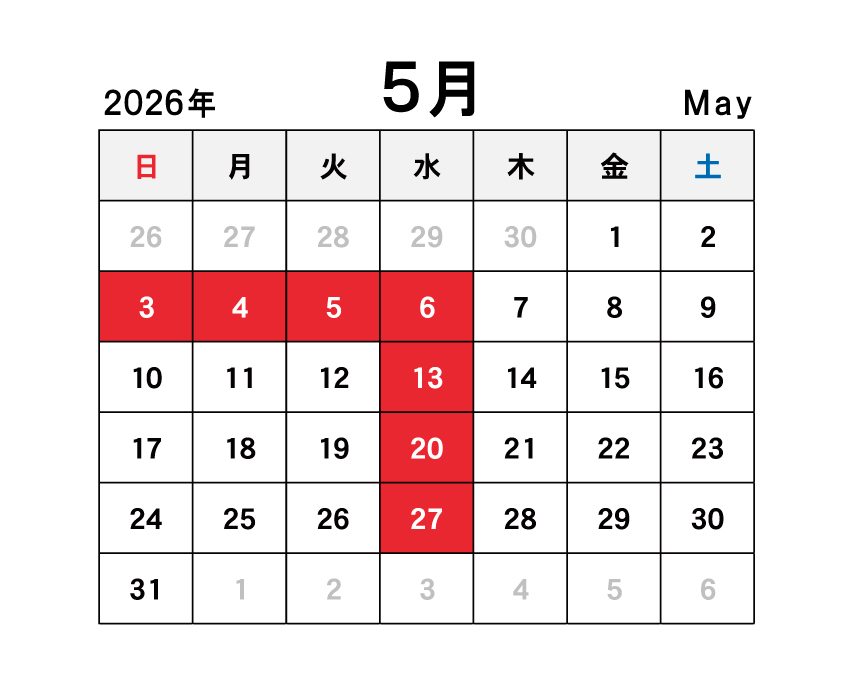 5月の定休日のご案内です